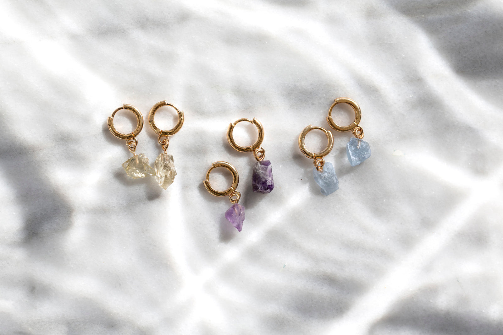 We've got amethyst, citrine, aquamarine, clear and rose quartz as well as amazonite raw stones.