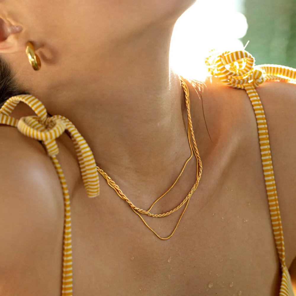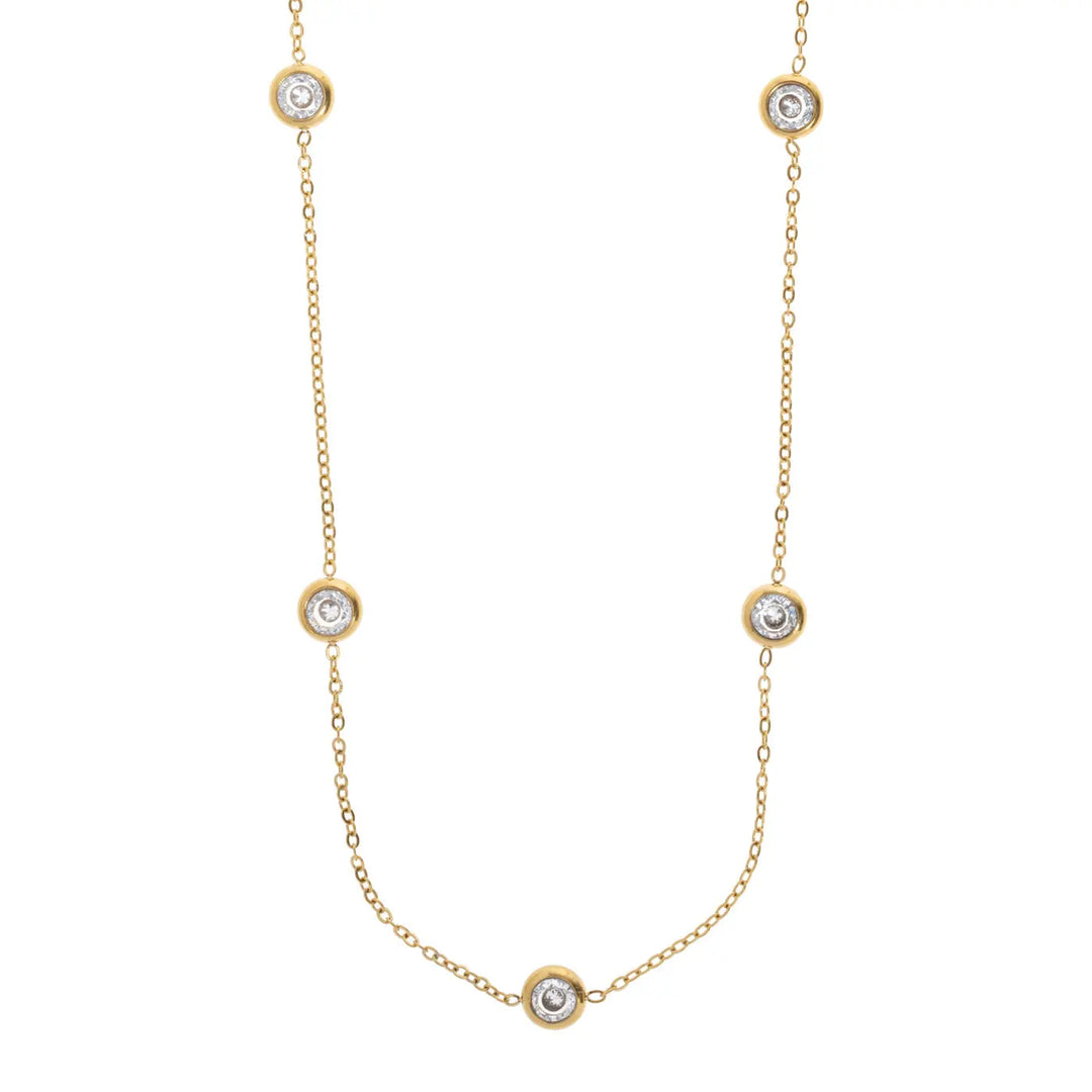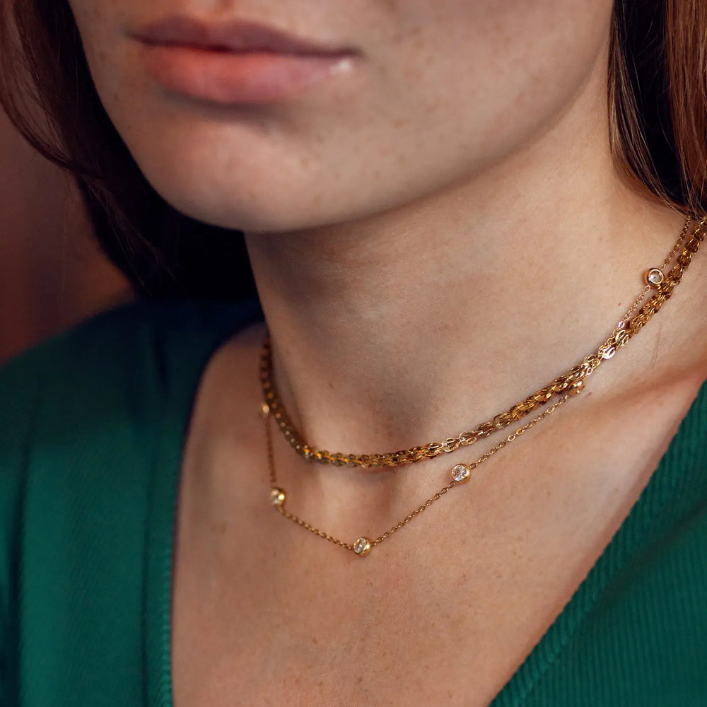 We offer a wide range of gold-plated necklaces perfect for any occasion, plated in 18k real gold for that sleek and luxurious finish. Our collection ranges from small, sophisticated designs to bold statement pieces that truly stand out. Whether you're after that subtle shine of a crystal pendant, the timeless beauty of pearls, or a sleek gold chain, these pieces add a touch of luxe to any outfit. Get ready to shine in style, day or night! Find the necklace in gold that best complements and elevates your personal style.