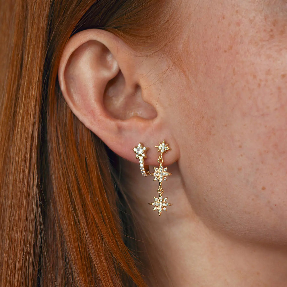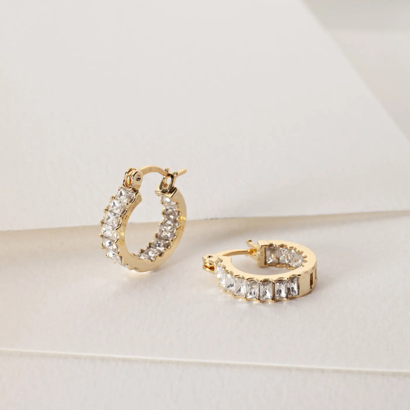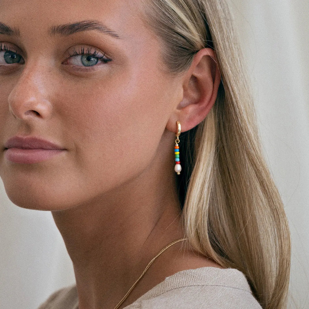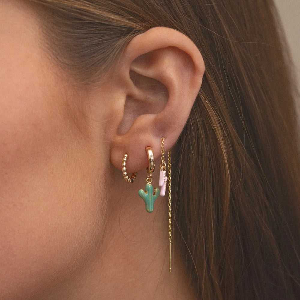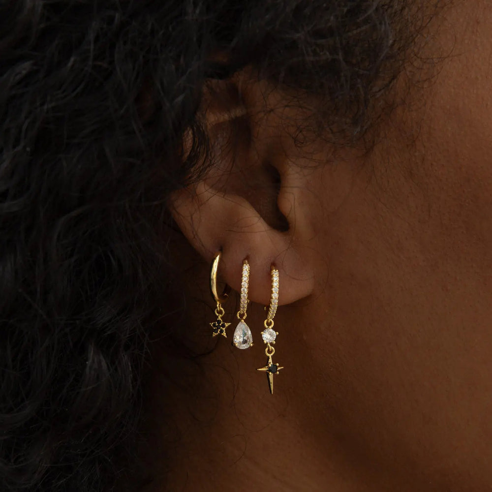 Huggie earrings, huggies, or huggie hoops, are all small earrings that sit close to the earlobe. They look stylish on their own for a minimalist look but can easily be paired with other jewellery to create a more unique style. Our huggies come in a variety of designs, from simple gold-plated styles to colourful charms and crystals.