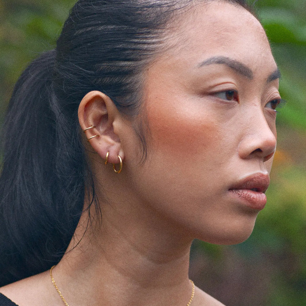 Sweat, shower, swim – our tarnish free, waterproof jewellery is made to last. Crafted in high quality stainless steel with 18k gold or rhodium plating, these pieces stay fresh no matter where life takes you.