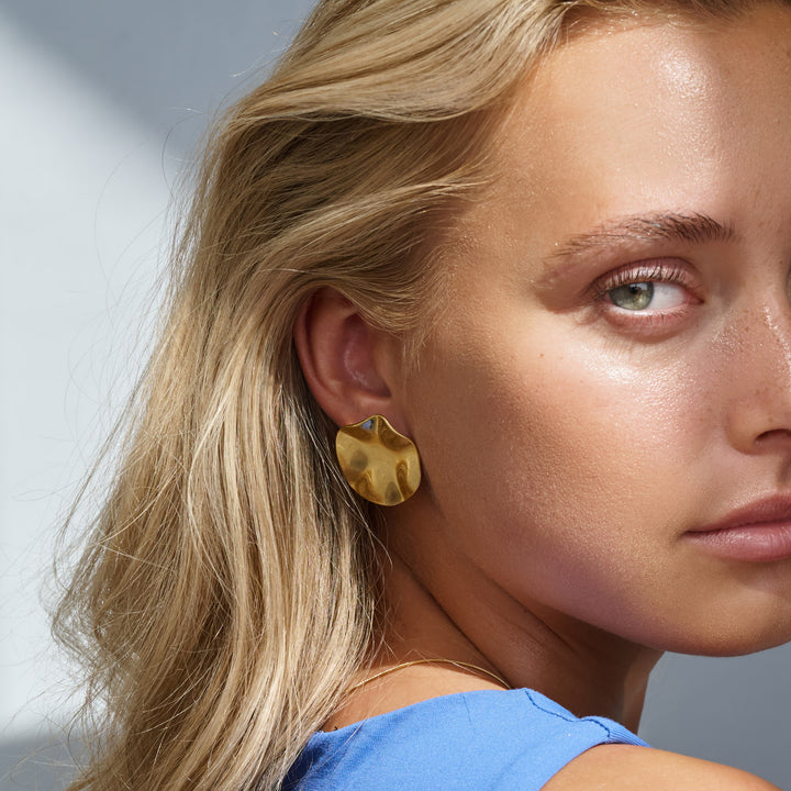 Gorgeous hammered statement earrings, perfect for the special occasions. The best part is that they are made of stainless steel, and plated with 18k real gold. In other words, they are water-resistant and won’t tarnish.