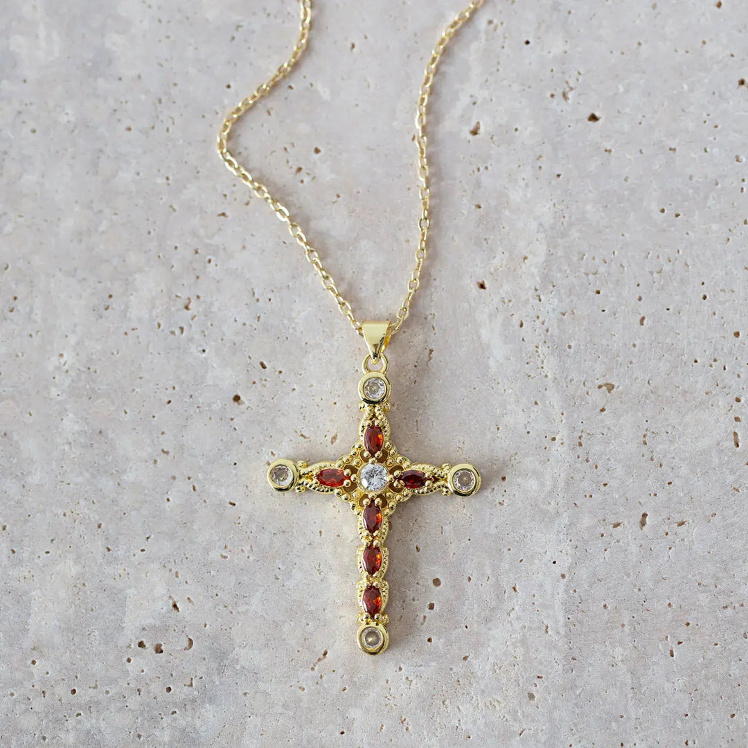 Gorgeous necklace with a stunning cross, dressed in high quality cubic zirconia. The chain is thin and luxurious. Plated in 18k gold. This beauty can be worn day and night. It looks great with everything!