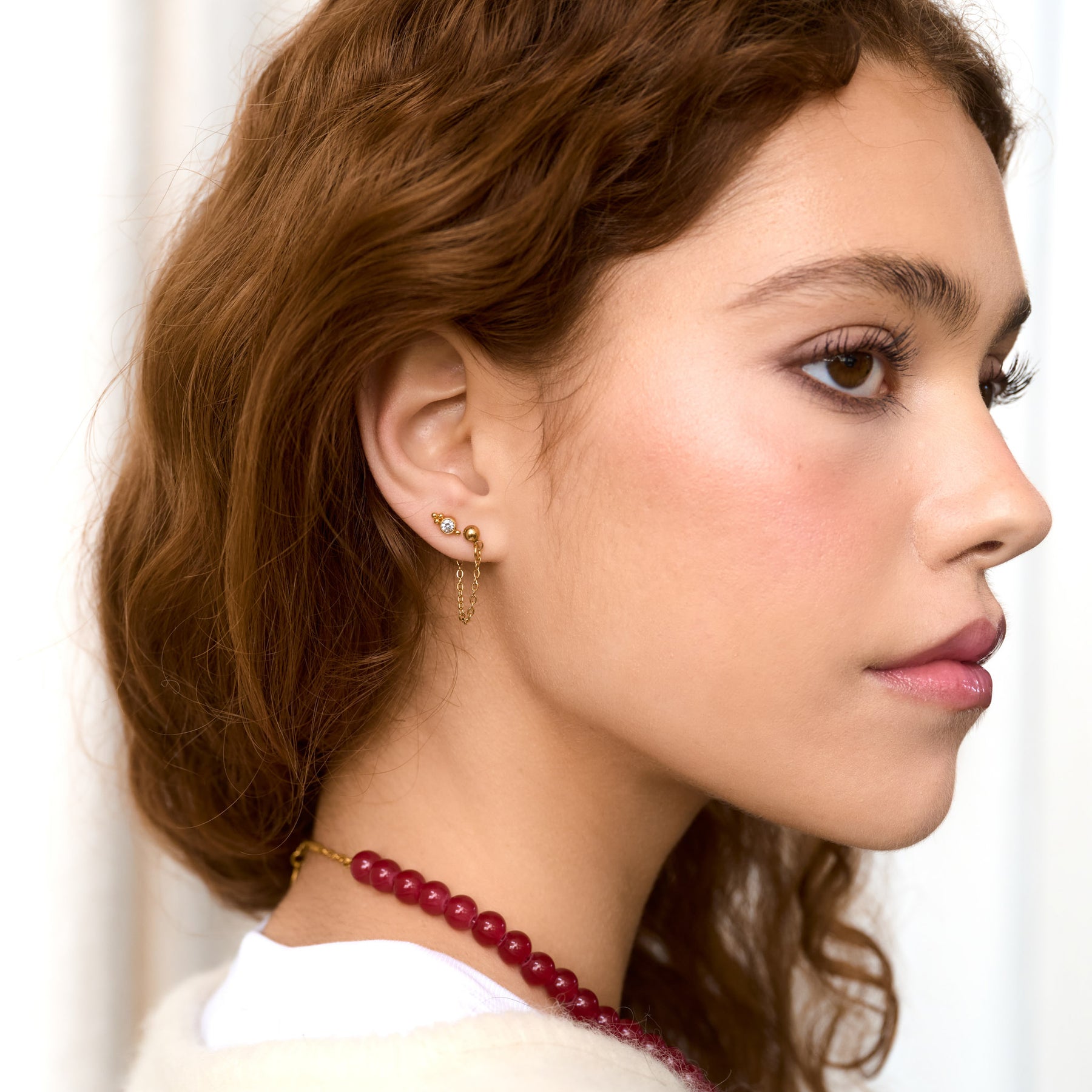 Delicate yet eye-catching, this minimalist studs features a central crystal framed by tiny gold spheres. Crafted in high-quality, waterproof materials, it’s perfect for everyday wear—whether you're at the gym, in the shower, or enjoying a swim.