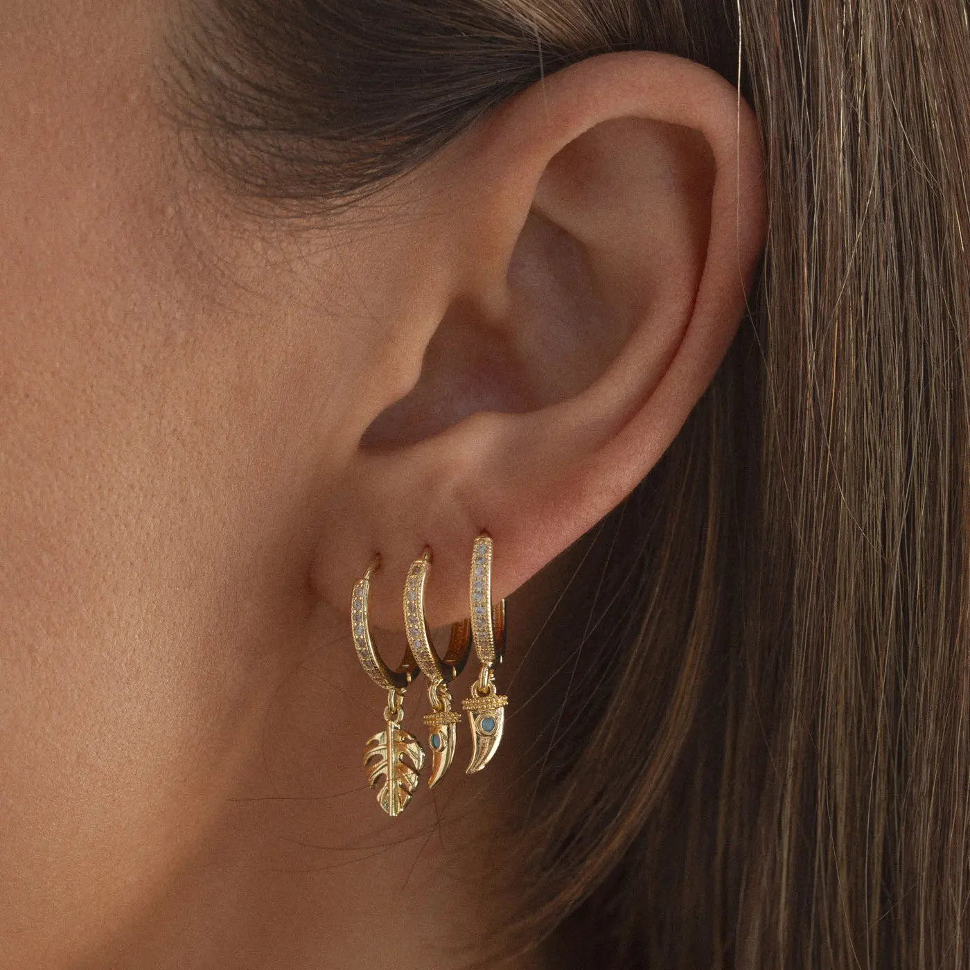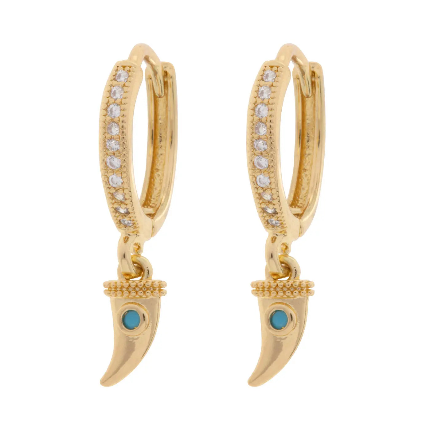 Bowyn - Small Horn with Blue Stone Hoop Earrings Timi of Sweden