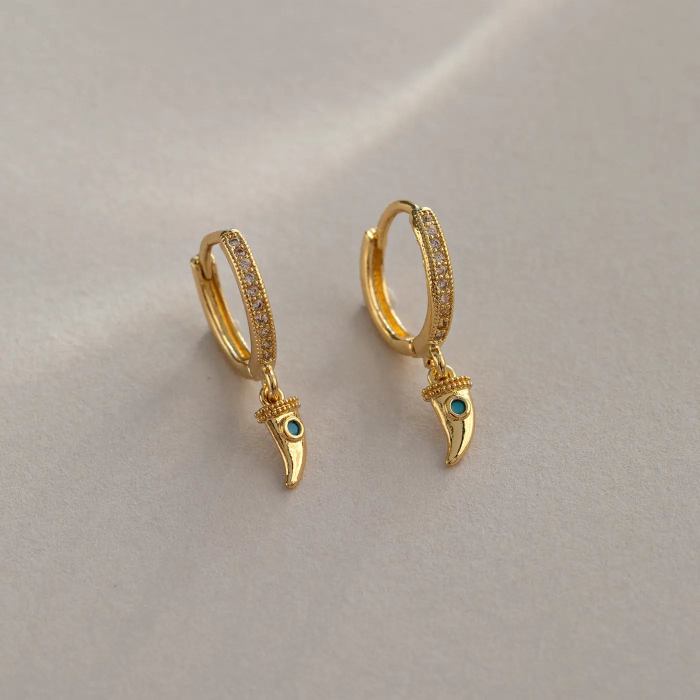 Minimalistic and beautiful hoop earrings with tiny horns.The hoops are bedazzled with tiny crystals. Perfect for everyday use and to match with other earrings.