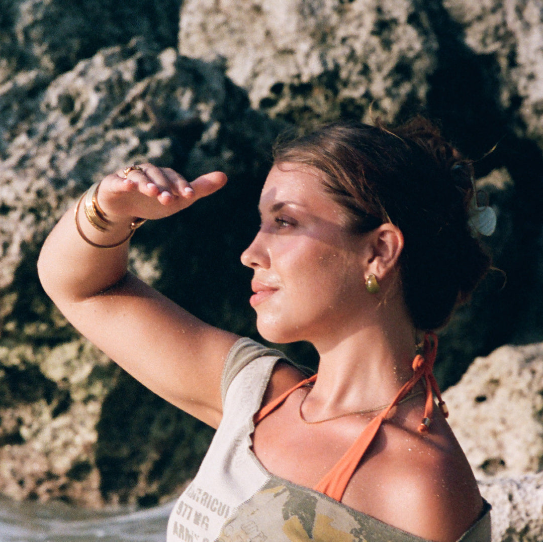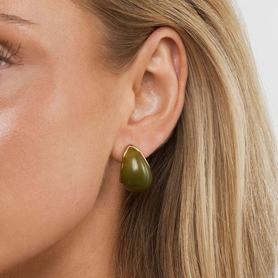 Make it pop. Carin studs mix green with golden stainless steel for a fun, fresh twist on your usual earrings. Lightweight, bold, and ready to stand out.