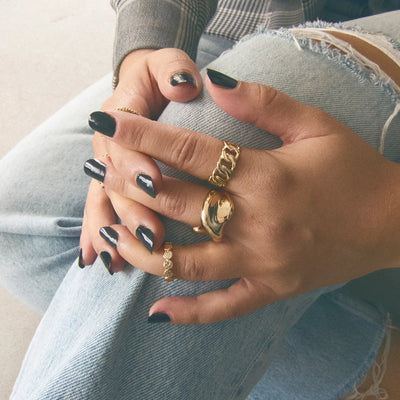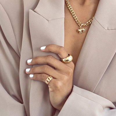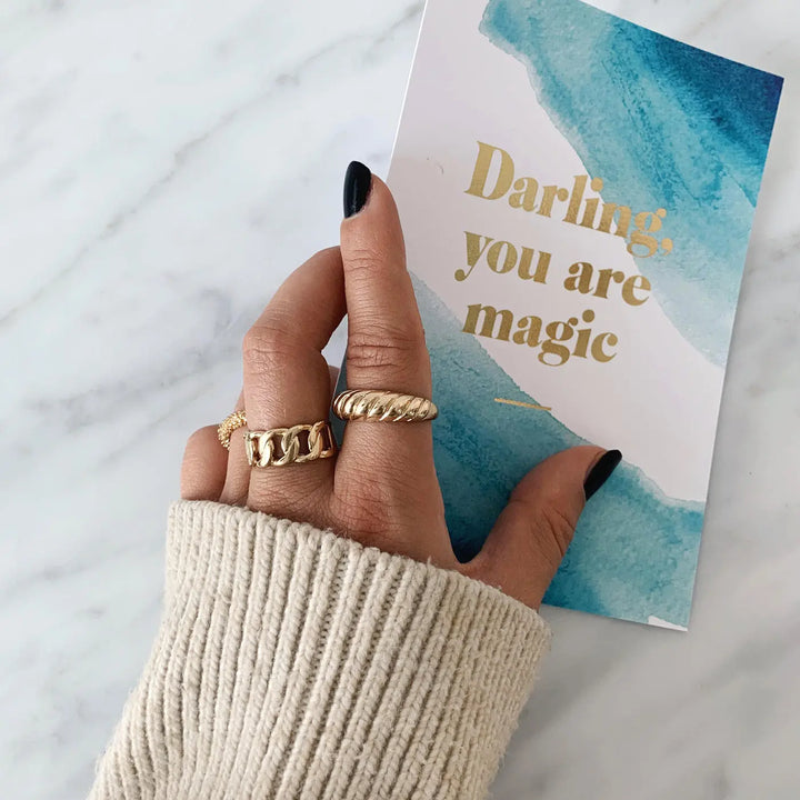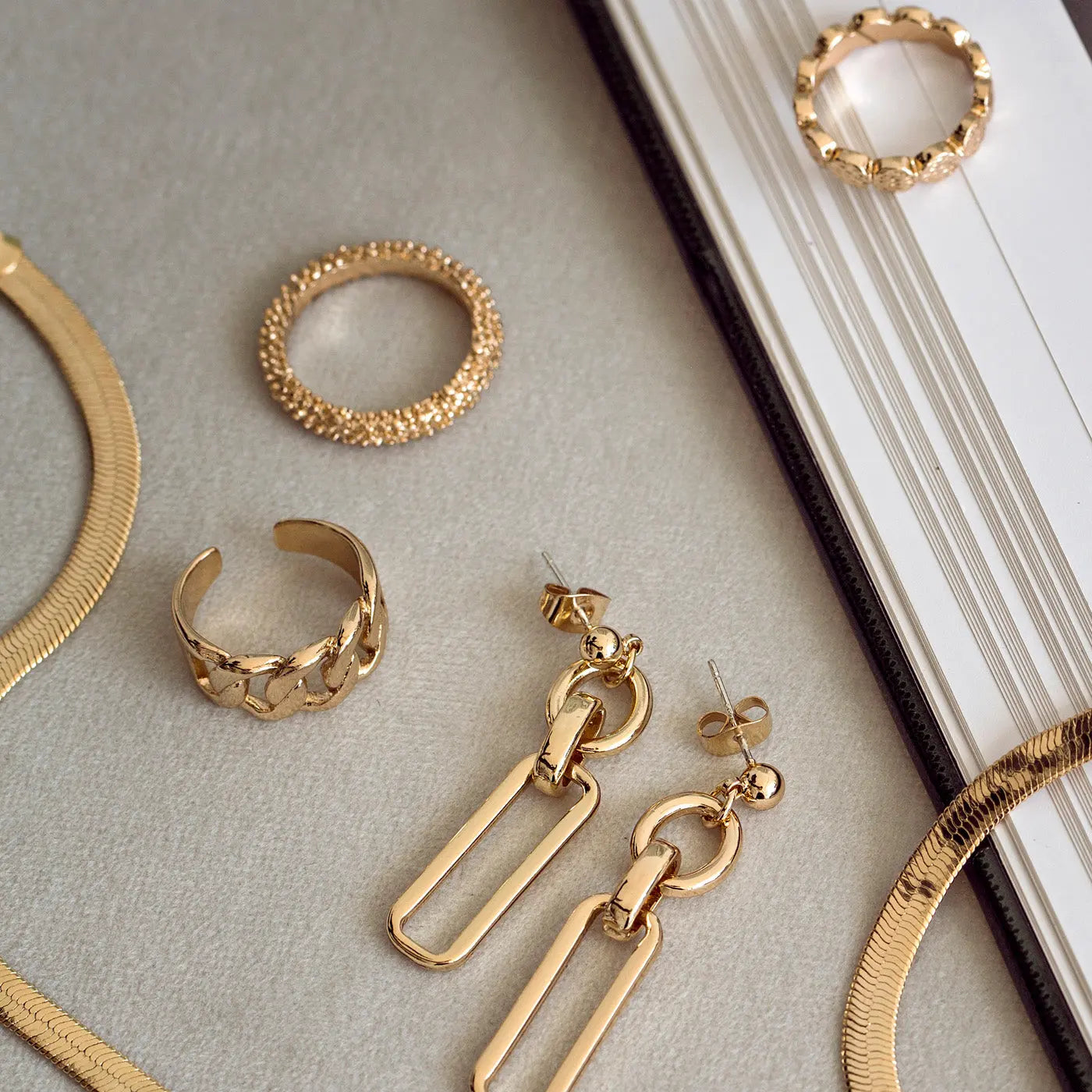 The chain ring will easily become your go-to ring for styling that effortless everyday look. All our jewellery comes with our nice packaging! Brass with gold plating. Free from lead, nickel and cadmium. Size: 17,5 mm Lead, Nickel and Cadmium Free.