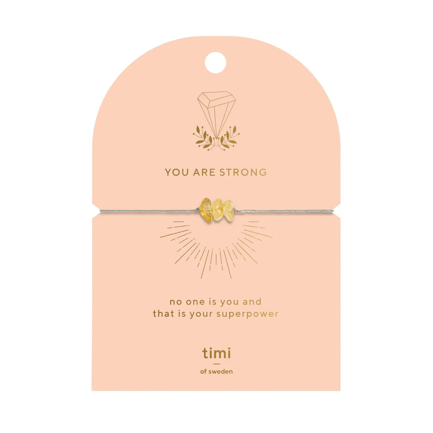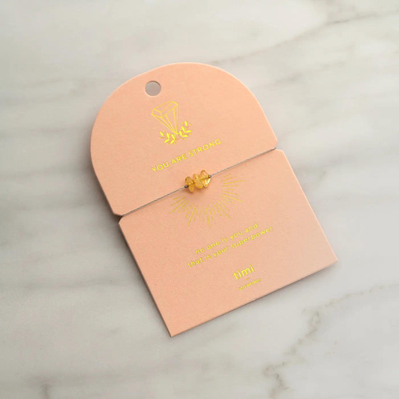 Citrine is the stone of strength and personal will. It is thought to carry the power of the sun bringing you positive energy and comfort. It inspires you to turn your negative thoughts into positive ones. It is said to help to bring you abundance, wealth and success. These cute stone chip bracelets symbolize different things. Carry it on your wrist and feel empowered.