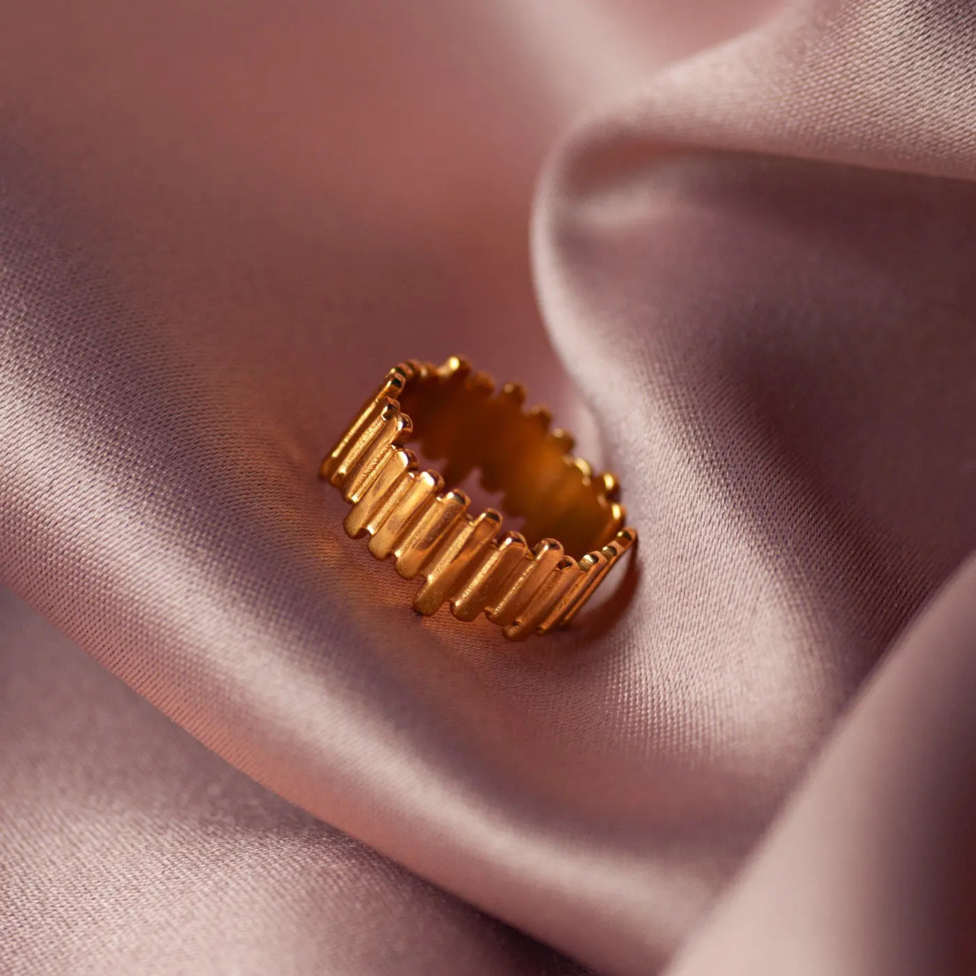 Wow! This eye catching ring plays with structure and dimension and we are just obsessed. The ring is unique and playful, perfect to style with our other rings. The ring is adjustable and fits all.