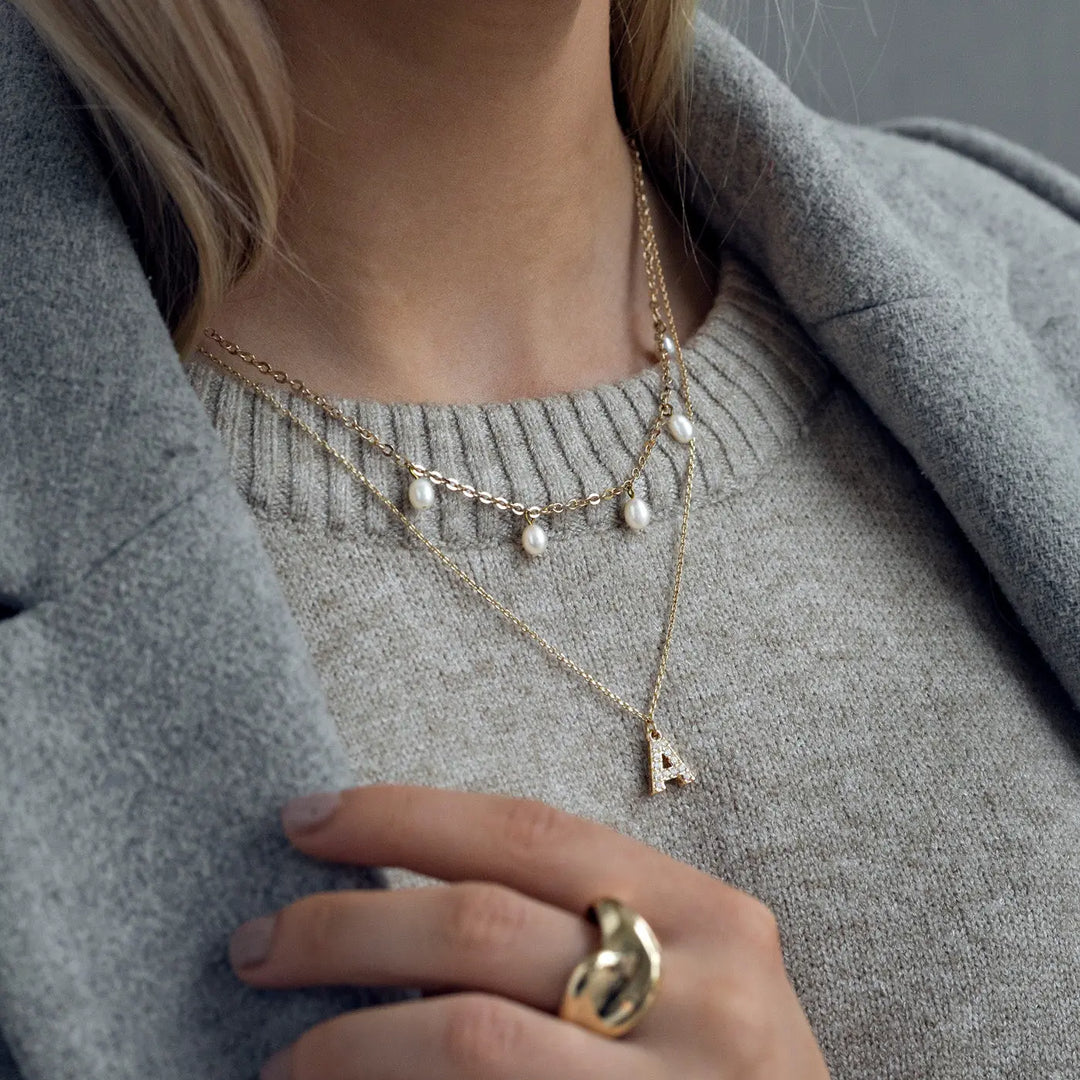 Our personalised crystal letter necklace in waterproof stainless steel is everything. This gorgeous initial piece has that perfect sparkle, is super easy to style, and literally goes with any outfit. Keep your loved ones close, or just spoil yourself – you deserve it! It's also the perfect gift, no cap.