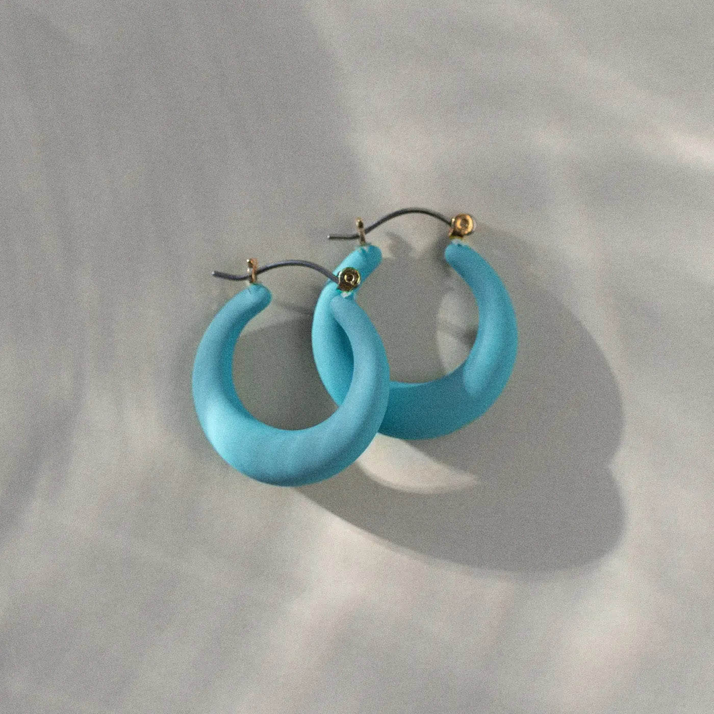 The plastic fantastic trend is back. Get these chic rubber coated hoop earrings and be up to date!