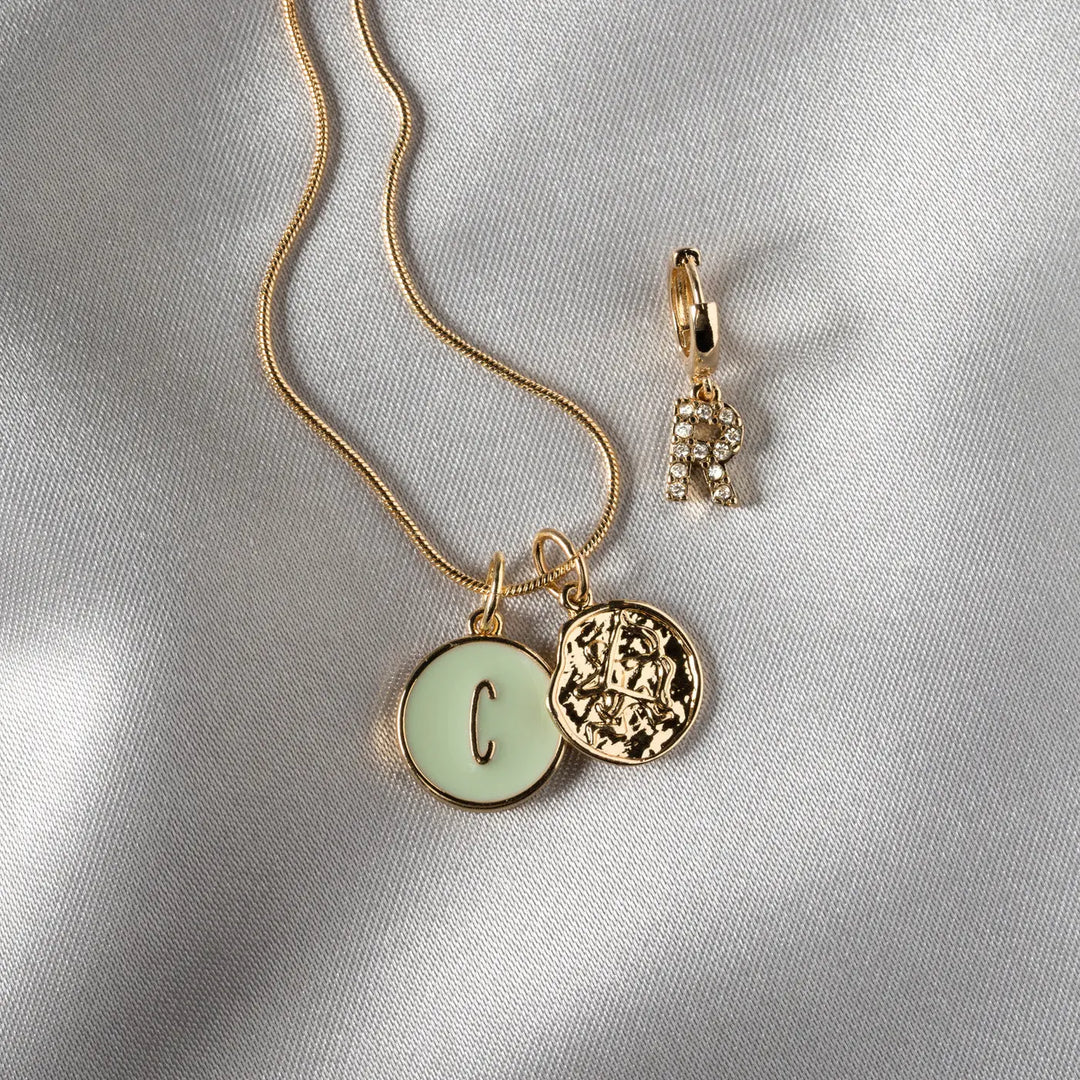 The pendent vary between different pastel colors depending on which letter you choose. Wear your personal letter and add more letters for the important people in your life. All our jewellery comes with our nice packaging! Brass with gold plating. Free from lead, nickel and cadmium.