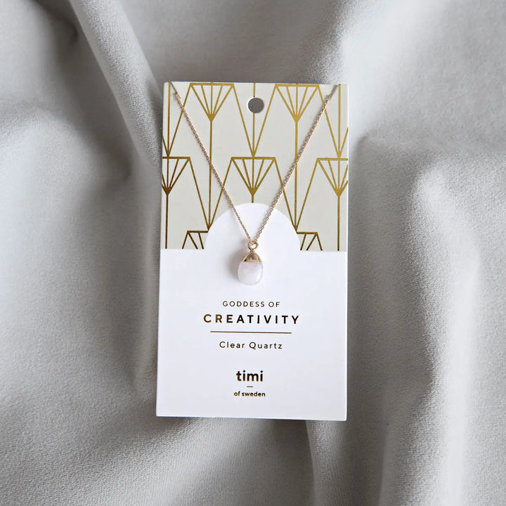 Feel like the goddess you are with our jewellery from Goddess collection. The series contains necklaces with elegant cut semi-precious crystals dipped in a classic gold detail. The necklace has a real crystal, which means that it can vary in clarity and shade. Choose from different crystals to get what you need from the stone. The necklace is always sent in our exclusively designed packaging. Brass with gold plating Length: 42 cm chain with 7 cm extension Free from lead, nickel and cadmium