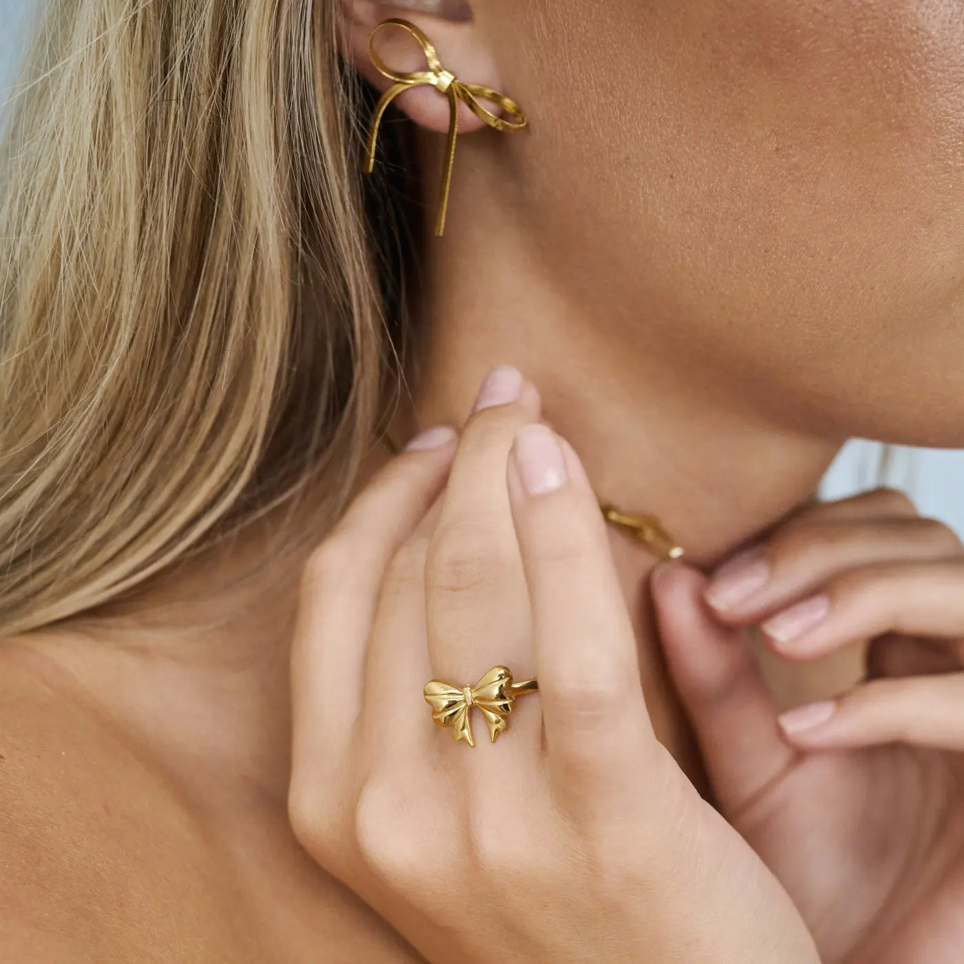 The cutest ring has landed in our webshop. The perfect tied bow on a ring with a sleek metal finish. The best part is that it's made of stainless steel, and plated with 18k real gold. In other words, it's water-resistant and won’t tarnish.