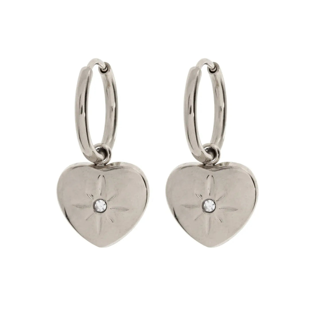 Elevate your style with these gorgeous hoop earrings with heart pendants. The beautiful cubic zirconia stone in the middle of the heart pendant adds that extra sparkle.