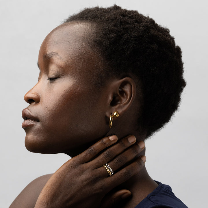 Why choose when you can have both? Lyn Duo Hoop Earrings combine gold and silver tones in sleek stainless steel, making them the perfect versatile accessory. These lightweight hoops bring contrast and charm to your look – ideal for mixing metals with ease.