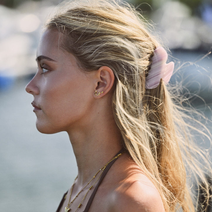 Get that beachy aesthetic on lock! This claw hair clip features a cool shell swirl pattern that's giving us all the coastal feels. Perfect hair accessory for cute little hair moments.