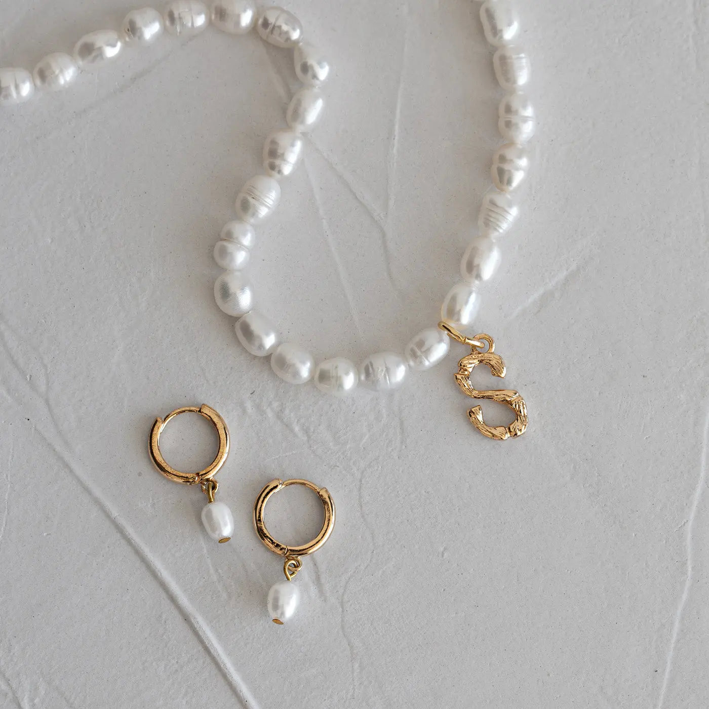 The ultimate summer jewellery is finally here. Create your own personal look together with our beautiful freshwater pearls. Radiate luxury and elegance in the perfect combination of pearls together with a personal touch - your letter, or someone you love! All our jewellery comes with our nice packaging! Brass with gold plating. Free from lead, nickel and cadmium.