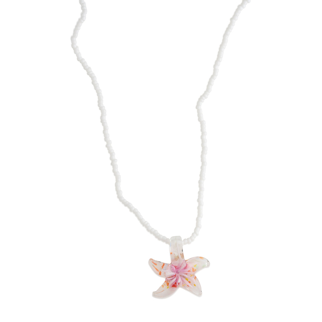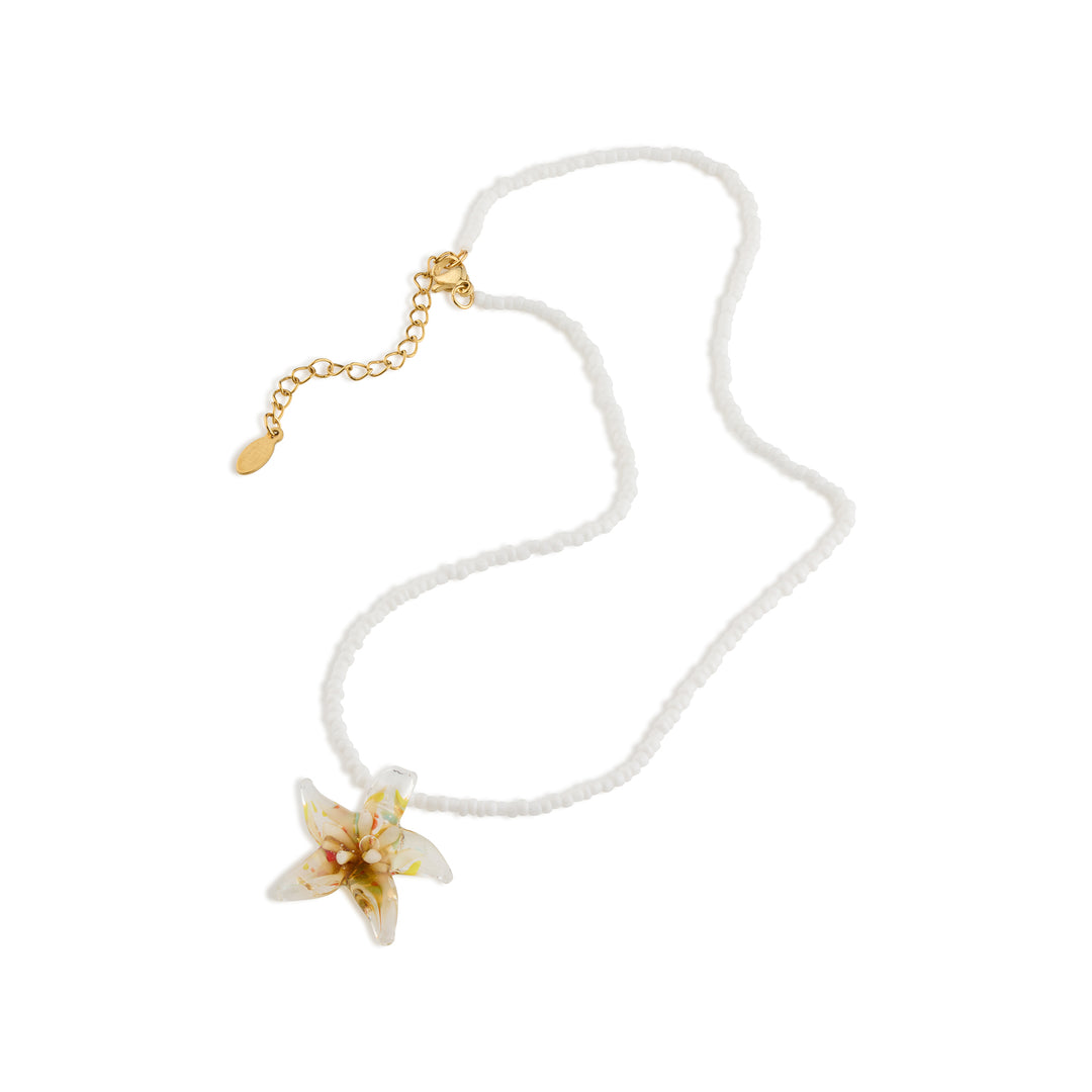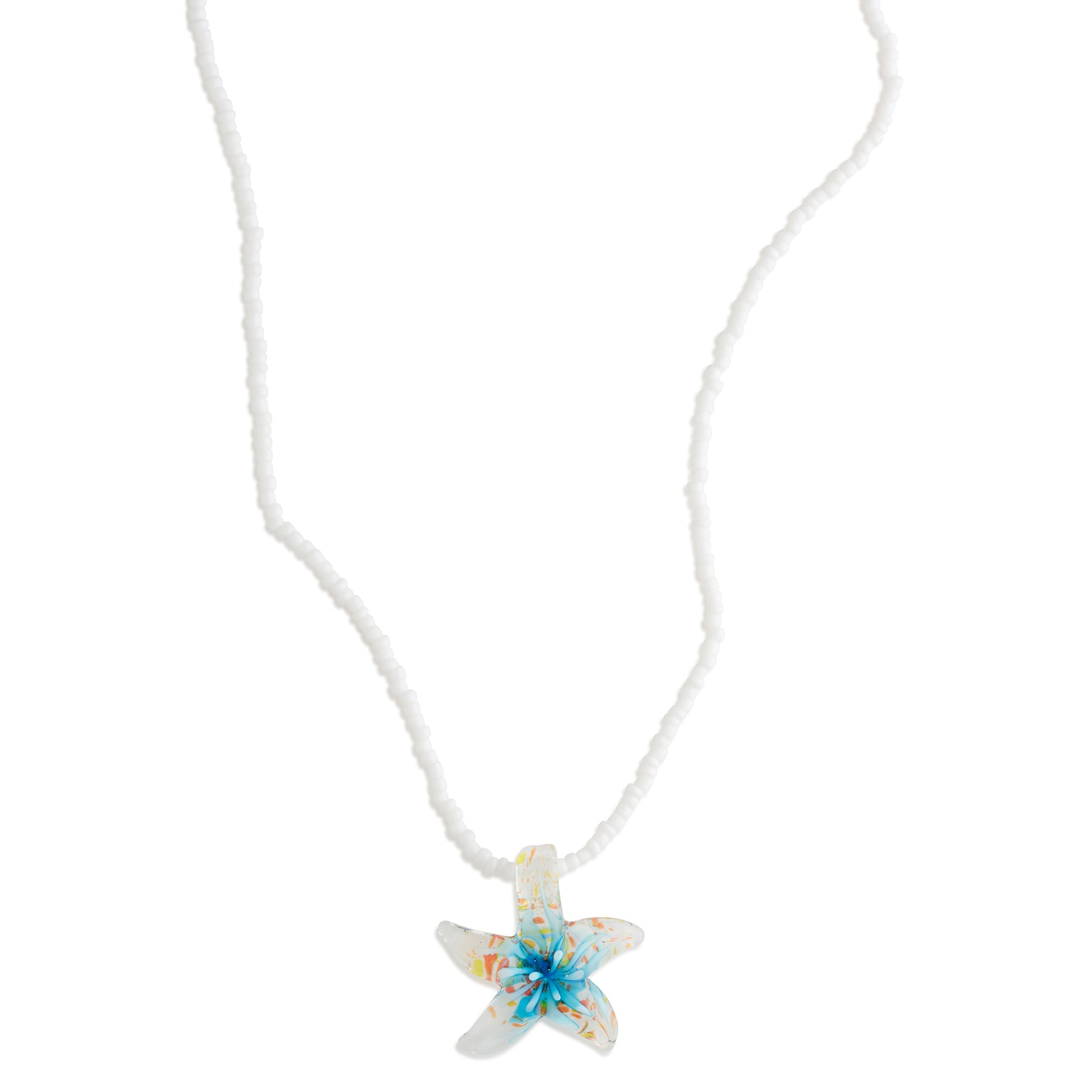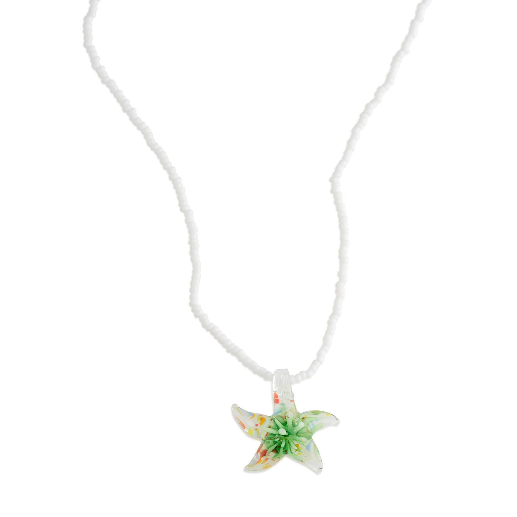 Ocean energy, locked in glass. The Serafina necklace features a handmade glass starfish in dreamy sea tones, strung on a delicate chain made from small white beads. Light, playful and perfect for channeling summer – even when you're far from the beach.