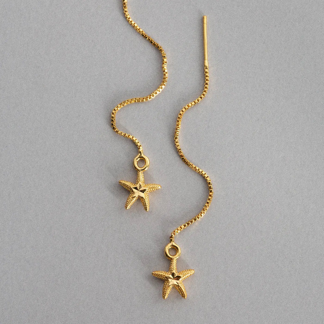 Beautiful chain earrings with a starfish at the end. Such a cute piece to style your ears with.