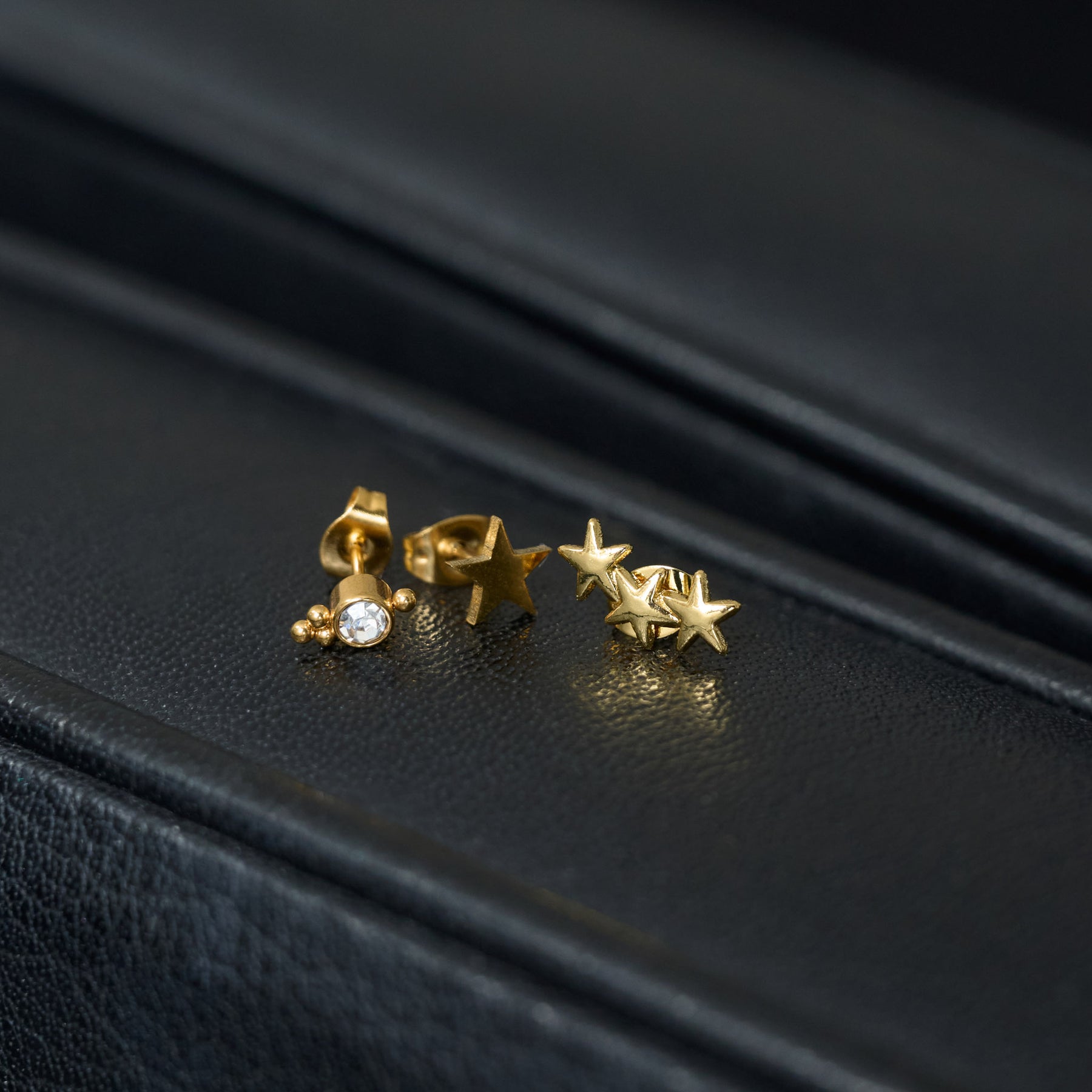 A little stardust goes a long way. Skylar mini climber earrings bring delicate celestial sparkle in stainless steel. Water resistant earrings, available in gold & silver.