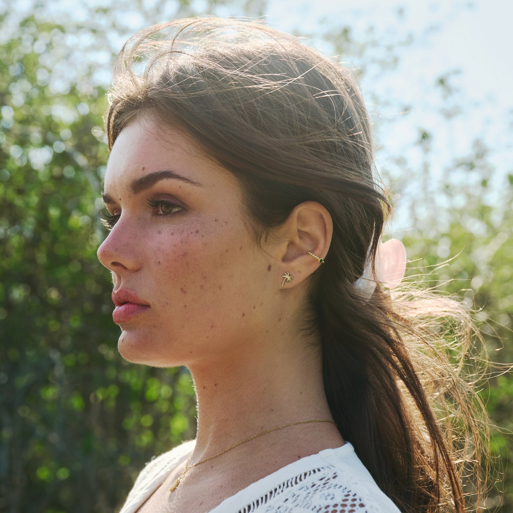 Tropical vibes, all year round. The Vanja Palm Tree Stud Earrings bring a touch of paradise to your everyday look. Crafted in 100% waterproof stainless steel, these delicate palm tree studs are made to shine wherever you go – from city streets to sandy beaches. Plated in 18k real gold for that luxe finish.
