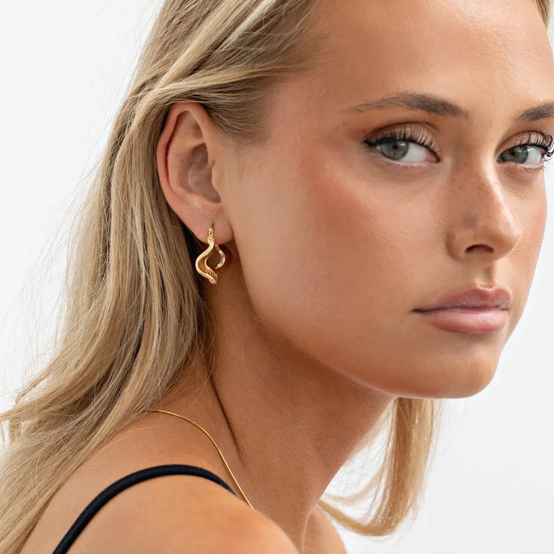 Cute wavy hoops with a pin to secure them. Easy to style, and easy on the ear!
